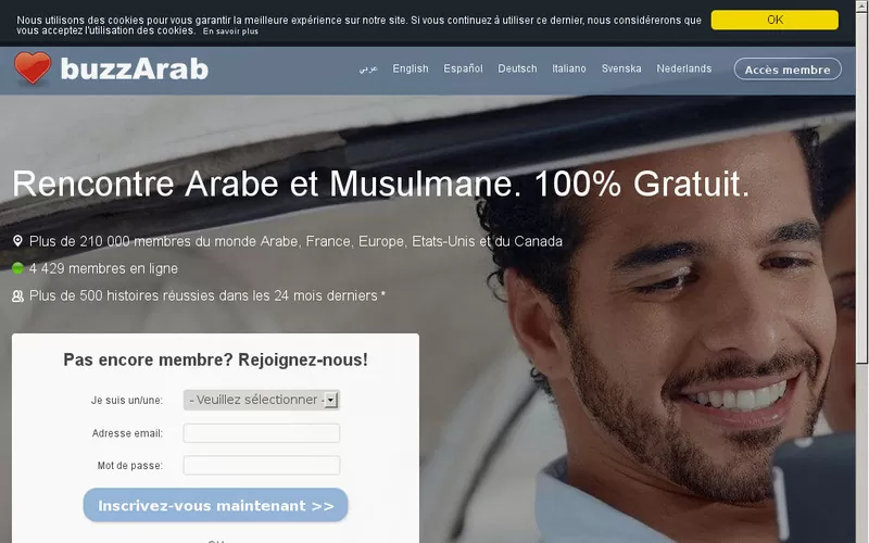 Le site est disponible dans 8 langues différentes et accessible donc depuis l’international, ce qui permet de rencontrer des beurettes un peu partout. Avec pas moins de 210 000 célibataires musulmans inscrits, le site Buzzarab enregistre chaque jour en moyenne 5000 connectés en simultané.