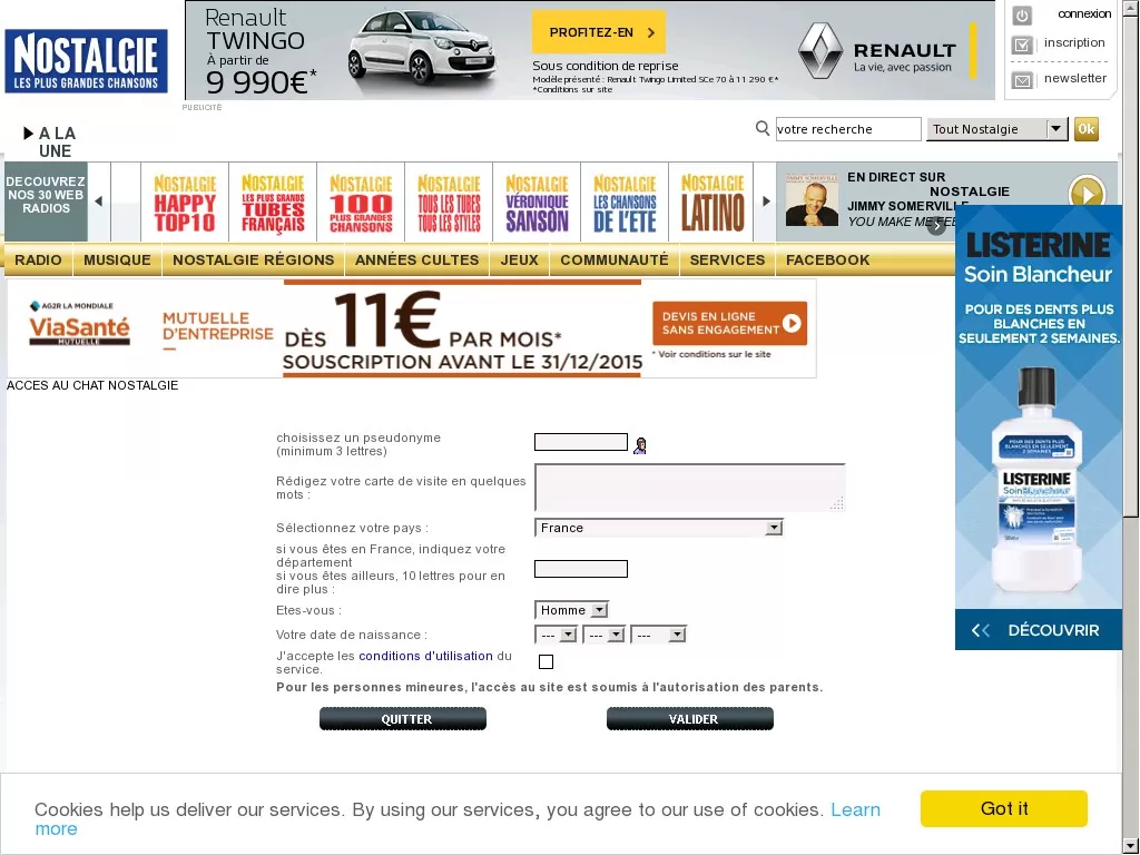 J’avais déjà testé le Chat NRJ, lui aussi proposé par la radio du même nom ou encore le Skyrock Chat , voyons donc ce que nous réserve cette fois le chat de la radio Nostalgie !