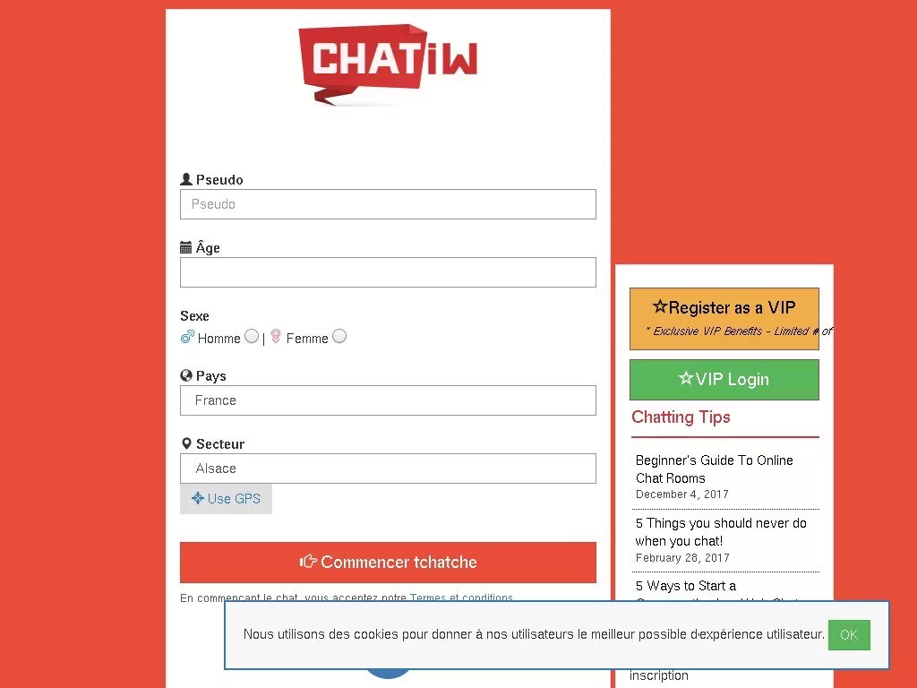 J’aime beaucoup ce tchat, et j’apprécie pour une fois que l’on sépare la version US/UK de la version FR sur un autre domaine. Car sur certains sites de tchats similaires à Chatiw me, les deux sont mélangés et on se retrouve vite avec des profils venus de l’autre bout du monde. En soit c’est cool, mais pour une vrai rencontre en ligne, je veux dire trouver quelqu’un, c’est pas franchement utile.