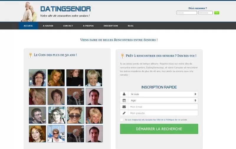 DatingSenior se présente comme un site de rencontre classique, à un détail près : ici, vous ne retrouverez que des seniors. Les membres approchent de la cinquantaine, ou ont largement dépassé ce cap. Faire des rencontres n’est pas quelque chose qui leur est interdit : pour moi, DatingSenior présente une belle accessibilité pour les personnes du troisième âge.