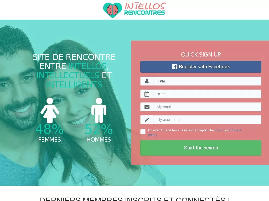 Ce site fait partie de DatingFactory, le plus grand réseau de rencontre en ligne dans le monde. Intello-Rencontres.club rassemble les célibataires intelligents. Quoi de mieux que de sortir avec une fille belle et intelligente, ou un homme beau et intello ? On ne peut jamais s’en assurer sur un site ordinaire. D’ailleurs, en vous inscrivant rapidement, vous aurez accès aux différents profils existants, vous avez déjà un aperçu sur la page d’accueil. Vous avez droit aux outils de communication en ligne pour tester le QI de la personne avant de vous engager. Alors, n’hésitez pas, inscrivez-vous immédiatement et savourez cette expérience !