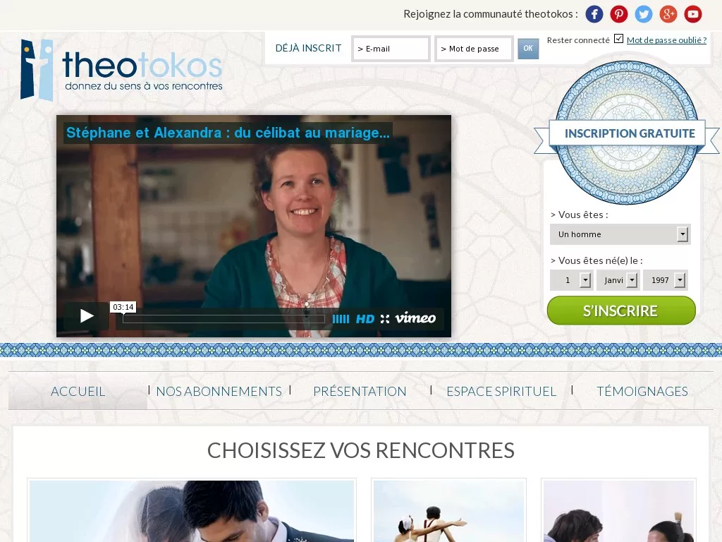 Suite mon billet sur Mektoube j’ai eu envie de tester un autre site dans la même lignée, il s’agit de Theotokos, qui lui en revanche est destiné aux rencontres chrétiennes. Chrétiens et CHrétiennes à la recherche d’une relation sérieuse, pour fonder un foyer par exemple se retrouvent sur TheOtokos.fr !