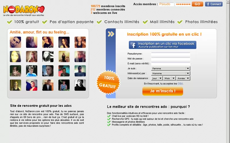 Nodaron, est un site de rencontres pour les ados, 100% gratuit. Vous l’aurez compris, le nom du site n’est pas là pour rien.