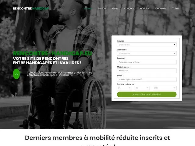 rencontre-handicap n’est rien d’un plus qu’un site de rencontres en ligne qui ressemble aux autres. Il dispose juste la particularité de viser un public bien précis. Autrement dit, au sein de ce dernier, les célibs s’inscrivent dans le but de rencontre des handicaps et puis c’est tout.
