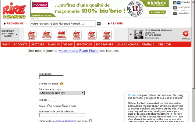 Vous êtes directement connectés au Tchat Rire et Chansons, et pouvez discuter avec les aurtres utilisateur. Bémol quand même , car il n’est possible de discuter que en privée, pas de salon ou autre. Cela me fait penser au Chat NRJ, ou au Chat Nostalgie !