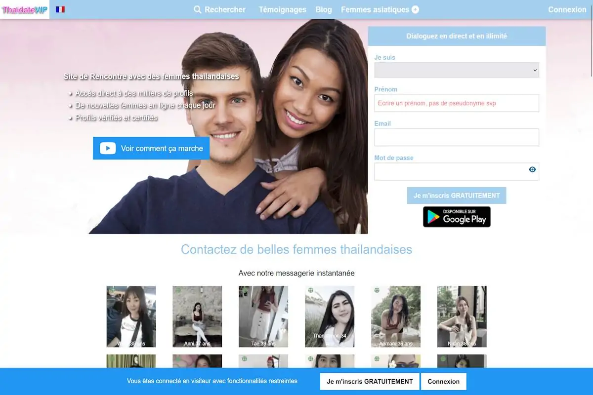 L’inscription sur Thaidatevip.com est rapide et simple. Vous pouvez créer un compte en fournissant quelques informations de base, telles que votre nom, votre adresse e-mail et vos préférences. Une fois inscrit, vous pourrez personnaliser votre profil, ajouter des photos, et commencer à explorer les profils des autres membres.