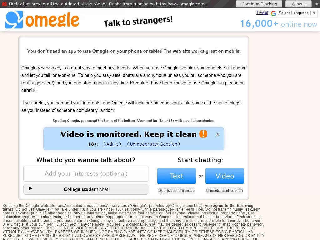 Chatroulette est un autre site de réseautage social aléatoire populaire dans le monde. Il est placé en 2ème position dans notre liste de tête de liste. Vous avez besoin d’une caméra pour parler à des étrangers sur ce site web. Il n’y a pas de bots ici et vous devrez créer un compte pour vous-même. Le principal problème avec Chatroulette est la vérification par SMS. Voir : Comment contourner la vérification des SMS. C’est une plateforme gratuite, mais si vous voulez parler seulement avec des filles ou des garçons, vous devrez payer pour cela.